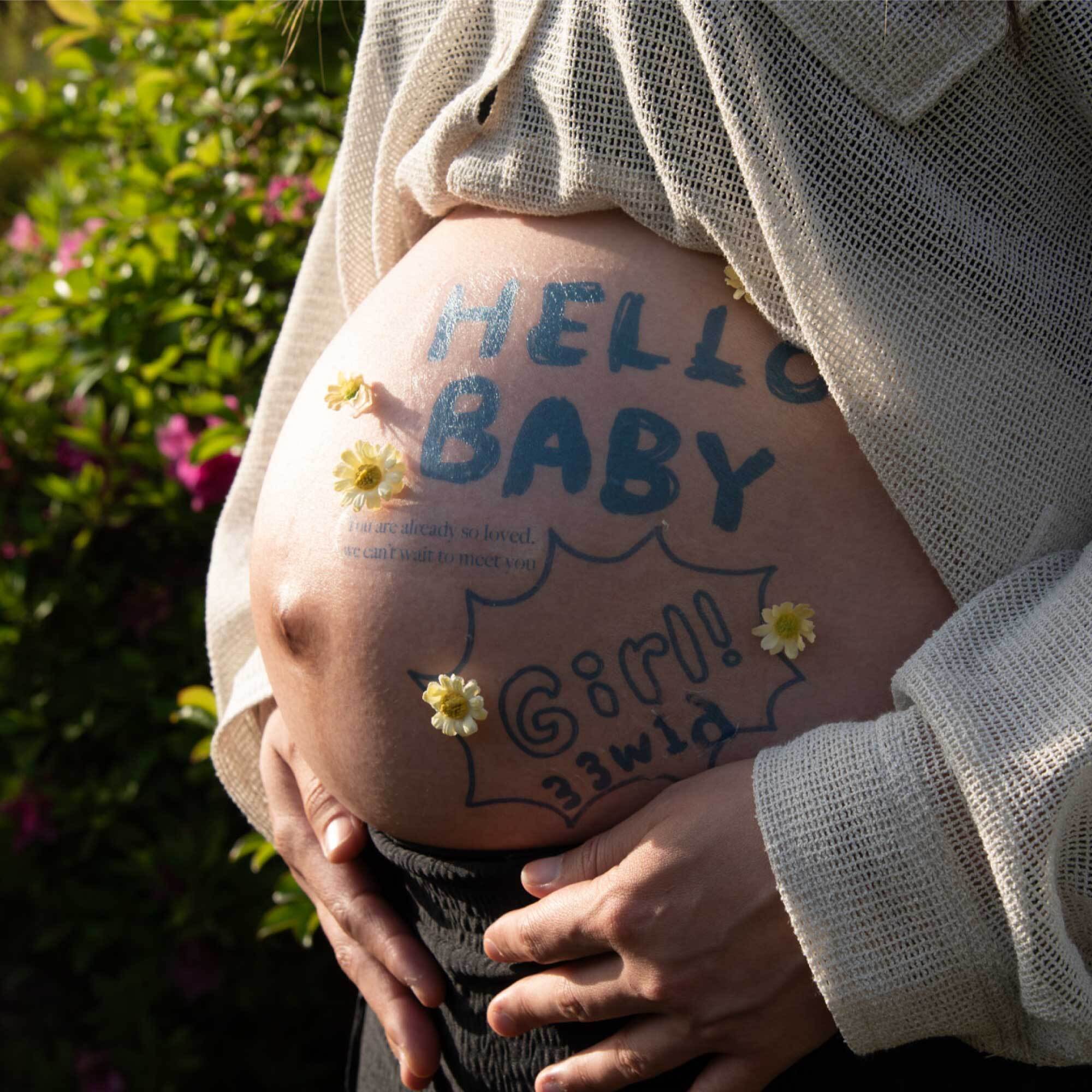 マタニティ、マタニティフォト、ベリーペイントシール、マタニティペイントシール、ボディーシール、タトゥーシール、セルフマタニティーフォト、シール、安産祈願、妊婦、デイジー、ベビー、2024年、男の子ベビー、女の子ベビー、ベビーシャワー、マタニティペイント