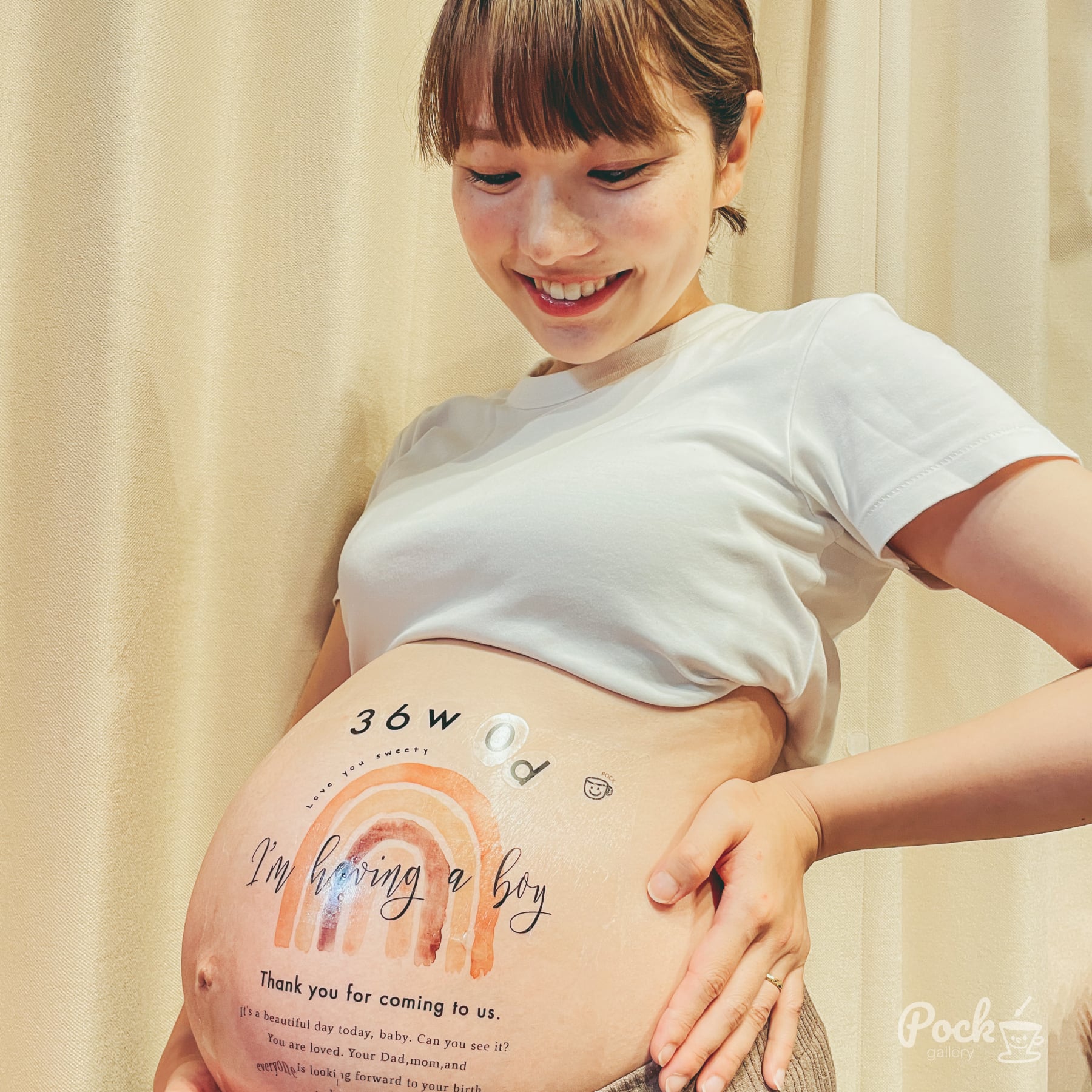 絶対に誰にも見せるつもりじゃなかったマタニティーフォトは、シールを貼ったら魔法みたいに可愛くなって、みんなにも見てもらいたいくらい可愛くて愛おしい思い出になりました。