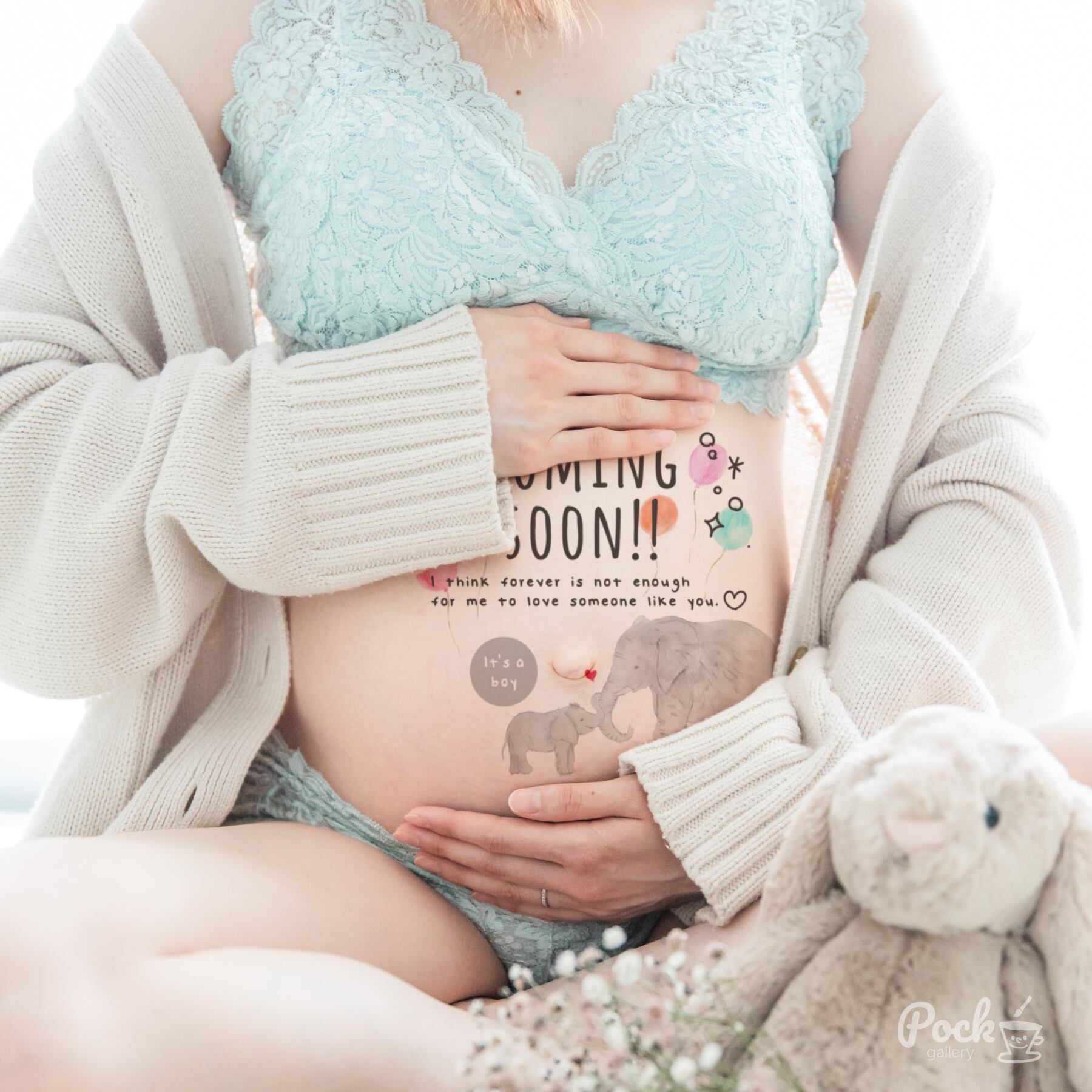 絶対に誰にも見せるつもりじゃなかったマタニティーフォトは、シールを貼ったら魔法みたいに可愛くなって、みんなにも見てもらいたいくらい可愛くて愛おしい思い出になりました。