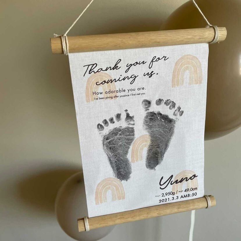 そんな気持ちで手形、足形の取れるタペストリーを作りました。